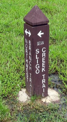 east Branch Trail before doubling back to the Northwest Branch Trail. I was looking for the Sligo Creek Trail, which heads towards Takoma Park and Silver Spring. I passed the West Hyattsville metro station (where the trail system will eventually connect into DC) and made it to Sligo Creek in time to look across the bridge, turn around and head back.
